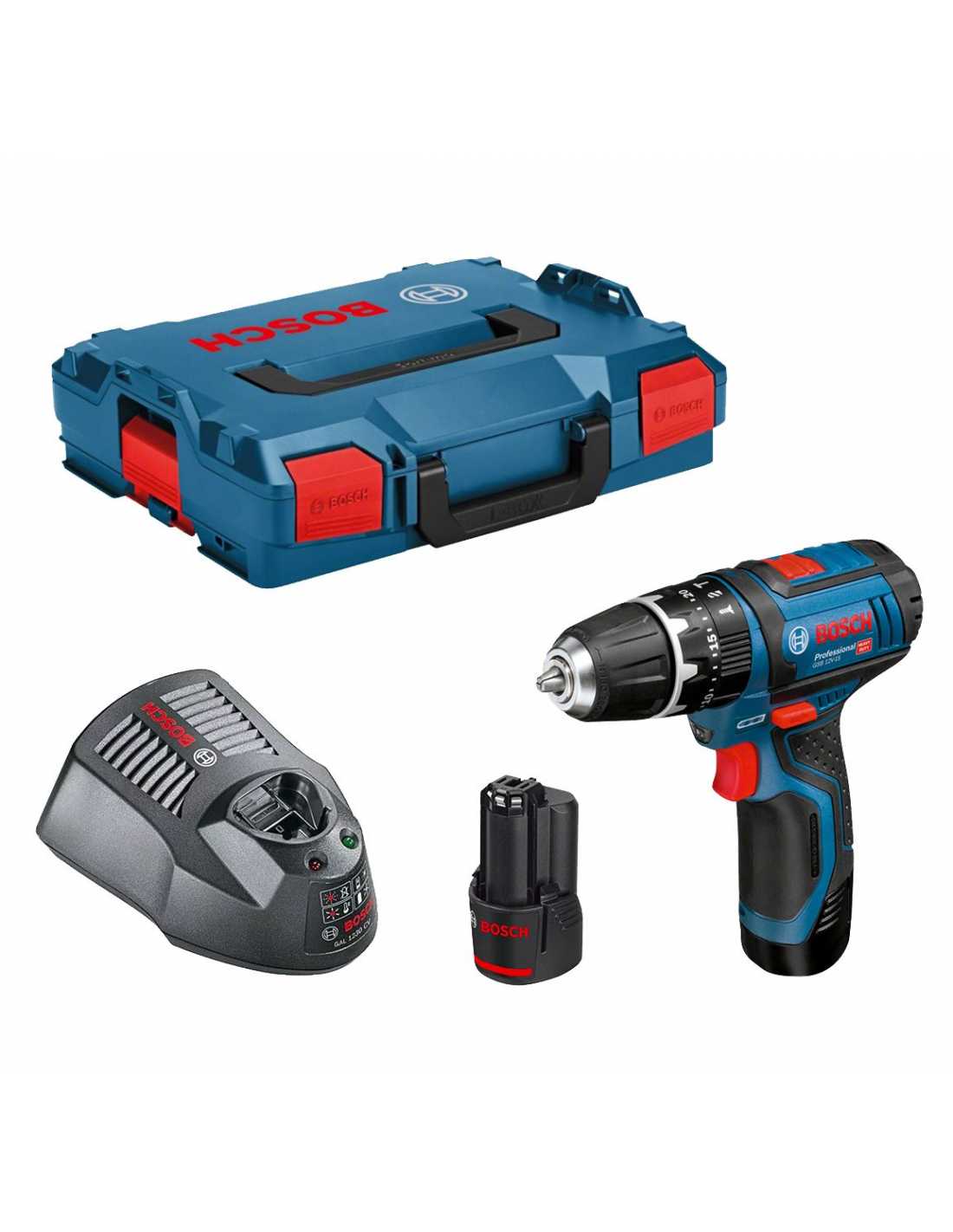 აკუმულატორიანი სახრახნისი BOSCH GSB 12V-15 2 x 2,0 AH L-BOX (06019B6906)