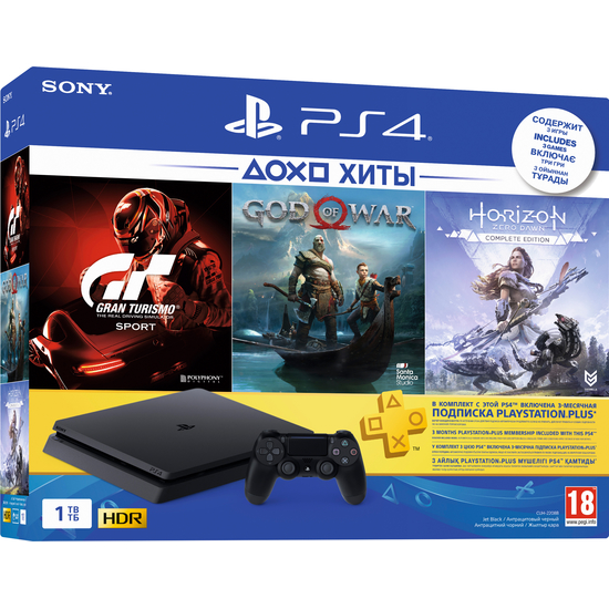 კონსოლი Sony PlayStation 4 Slim (1TB) Black with HZD+GTS+GOW (PS4)