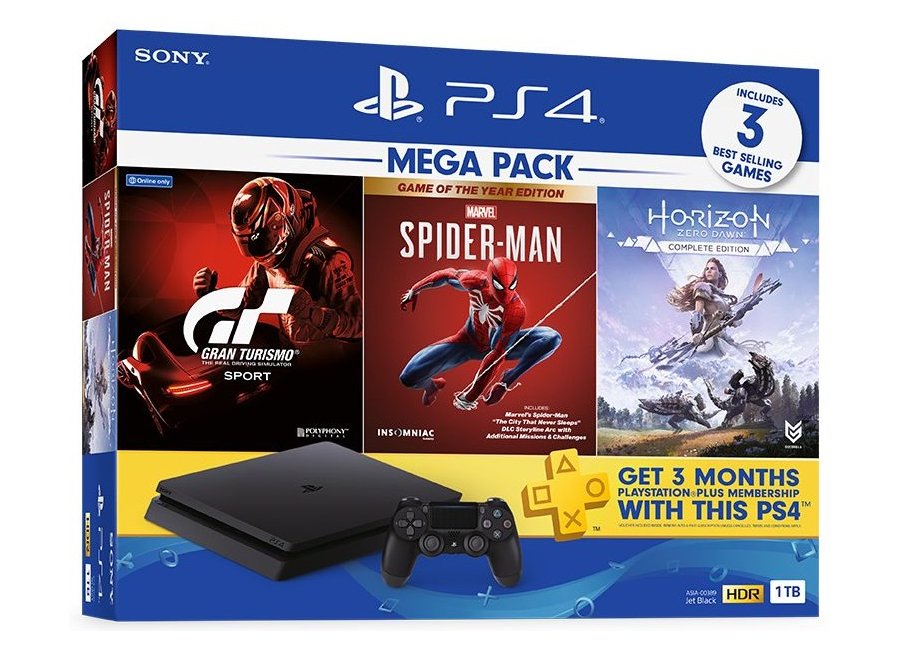 კონსოლი PlayStation 4 Slim (1TB) Horizone Zero Down+Spider-Man+Gran Turismo Sport